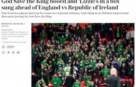 屡教不改!双方球迷互嘘国歌 英足总和爱尔兰足协将再次被欧足联罚款