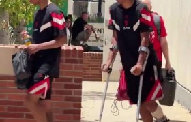 6200万刚提的新车啊!曼联新援约罗拄双拐走路,左脚裹得严严实实