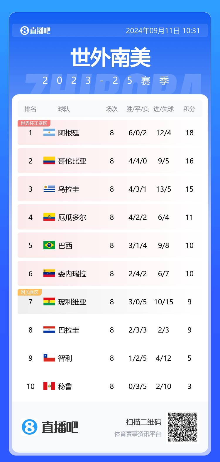 9月的南美区世预赛,玻利维亚4-0大胜委内瑞拉、2-1击败智利。