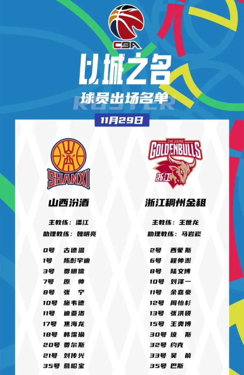 🌟山西男篮vs浙江大名单:张宁、吴前领衔,两队合计八外援出战