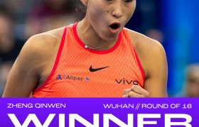 10月10日讯WTA1000武汉网球公开赛女单1/8决赛,郑钦文决胜盘送蛋,在家门口2-1逆转加拿大...