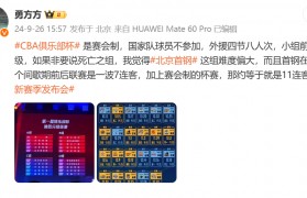 北京时间9月26日讯,根据媒体人@勇方方报道:CBA俱乐部杯是赛会制,国家队球员不参加,外援四节八人...